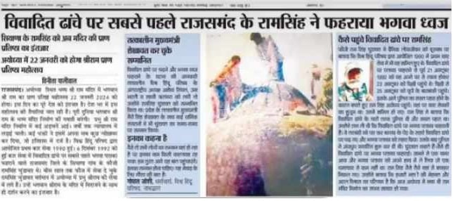 जब क्षत्रियों के बलिदान और श्रीराम मन्दिर के लिए संघर्ष का प्रश्न आया तो कई न्यूज़ में उनके संघर्ष को बताया भी गया परन्तु जब राजस्थान के राजसमन्द से एक ऐसी जानकारी सामने आती हैं जो सबको आश्चर्यचकित करदेती हैं ।
